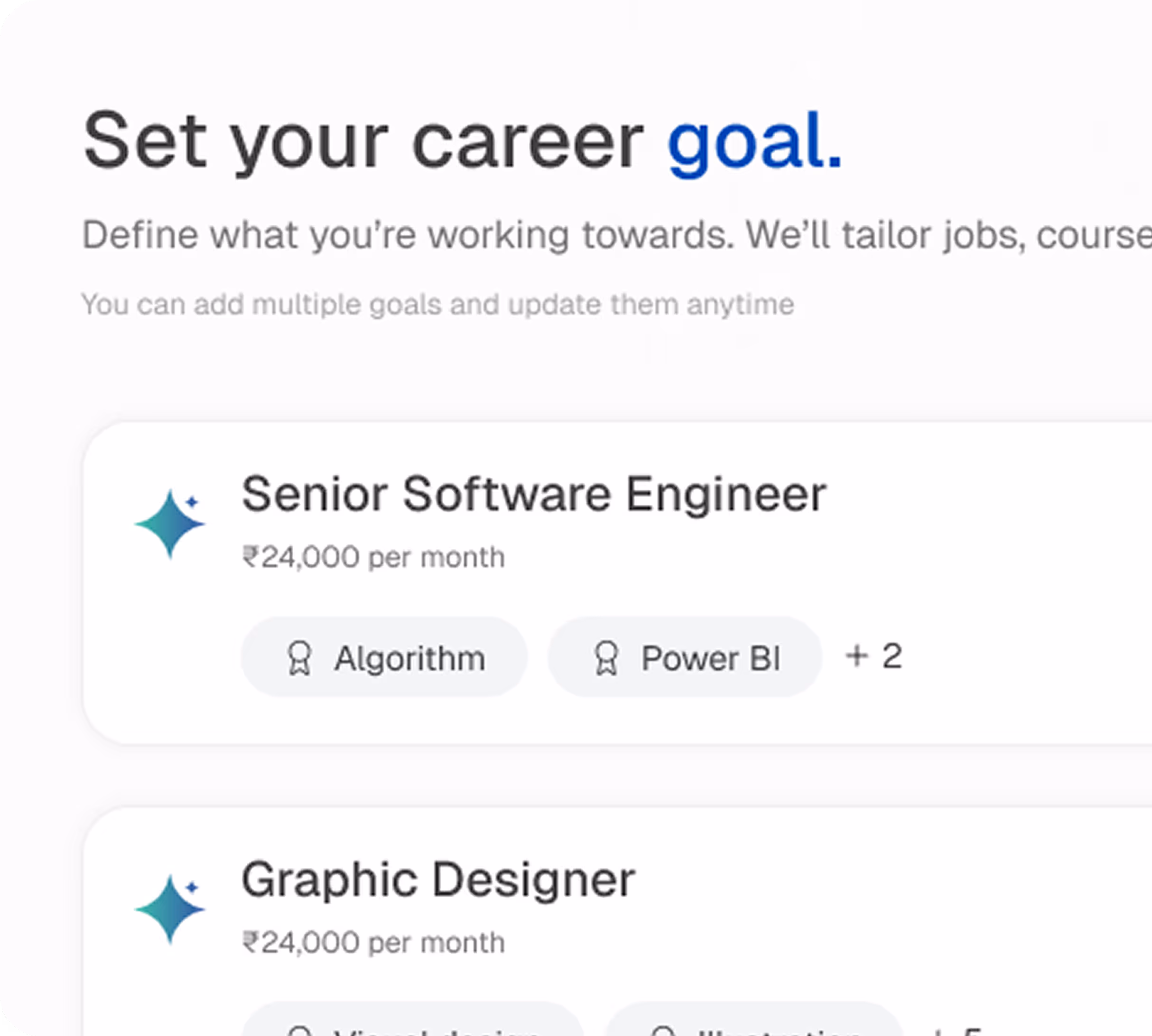 Create a skill wishlist, set target roles, salary, and timeline.